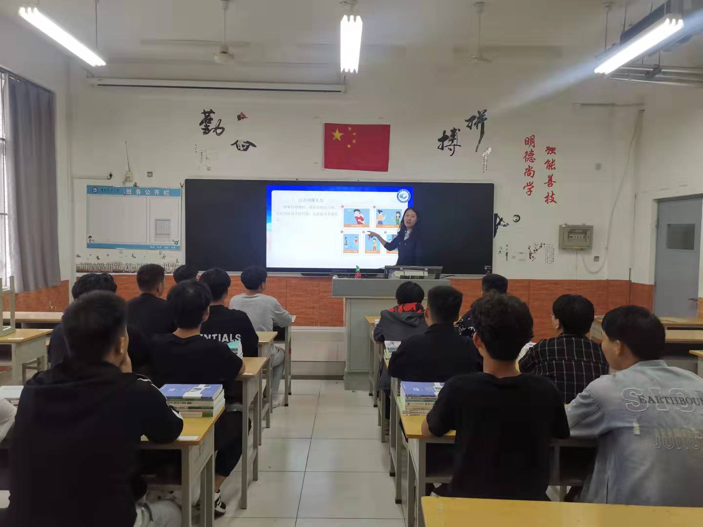 本次主题活动围绕认识德尔塔、个人防护、公民防疫基本行为准则、中国担当、弘扬伟大抗疫精神展开。班主任结合相关真实案例以及人物事迹向同学们普及德尔塔知识,让同学们对德尔塔的传播方式、表现特征和预防方法有所了解,要求同学们每日三次进行自我健康监测,并按照要求上报数据。随后对公民防疫基本行为准则进行了重点讲解,要求同学们做到勤洗手、科学戴口罩、注意咳嗽礼仪、少聚集、文明用餐、遵守1米线、常通风、做好清洁消毒、保持厕所卫生、养成健康生活方式、号召员工响应国家新冠病毒疫苗接种政策,积极配合疫苗接种。勉励同学们大力弘扬“生命至上、举国同心、舍生忘死、尊重科学、命运与共”的伟大抗疫精神,并严格遵守防疫要求,做好个人防护。