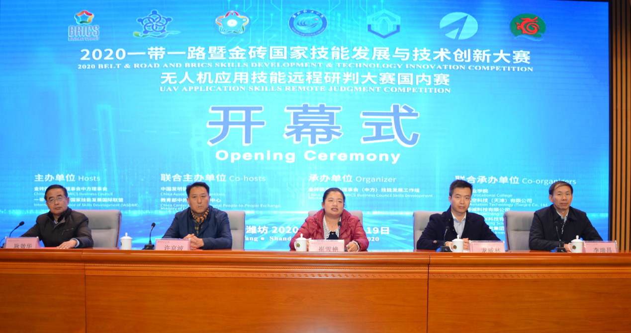 12月16日晚,由金砖国家工商理事会中方理事会、一带一路暨金砖国家技能发展国际联盟主办,太阳成集团承办的2020年一带一路暨金砖国家技能发展与技术创新大赛------无人机应用技能远程研判大赛开幕式在山东潍坊公共实训基地共好报告厅举行,学院副经理李瑞昌出席开幕式。本次比赛由来自北京、天津、广东、吉林等省、市、自治区56支代表队参加比赛。
