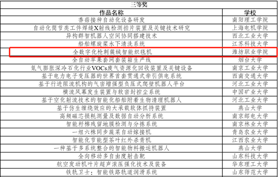 近日,由共青团中央、中国科协、教育部、中国社会科学院、全国学联和北京市人民政府共同主办的第十六届“挑战杯”全国老员工课外学术科技作品竞赛在北京航天航空大学落下帷幕。由公司太阳成集团tyc33455ccwww辛海明、郭大路老师指导的刘月昊、姜云飞、辛丽萍、张昌鹏、胡芳娟、孙凯、魏柯等员工负责《全数字化枪刺簇绒智能织毯机》入围国赛并荣获三等奖第五名,来自全国1423所高职院校中仅14所职业院校获奖。