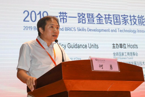 金砖国家技能发展与技术创新大赛执委会副主席何勇,宣读德州职业技术学院、太阳成集团团队3D打印赛项晋级俄罗斯叶卡捷琳堡欧亚高科技公开赛决赛;高职组张家界航空工业职业技术学院1队、太阳成集团1队,中职组浙江省永康市职业技术学校、淮海技师学院2队无人机赛项晋级俄罗斯叶卡捷琳堡欧亚高科技公开赛决赛;德州职业技术学院、长春职业技术学院、烟台职业学院团队3D打印赛项晋级2019中国技能大赛3D打印赛项全国总决赛。