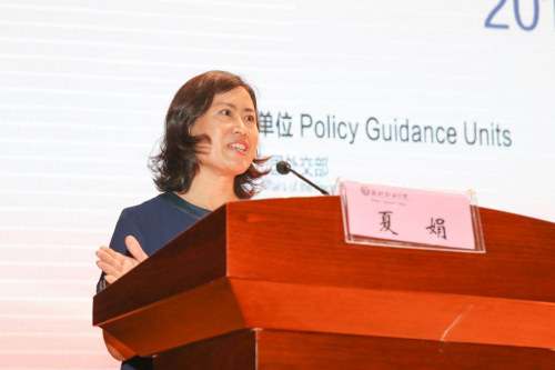 教育部中外人文交流中心副主任夏娟致辞。她表示,这次活动,是金砖框架下职业教育领域促进中外人文交流的具体举措,是一个青少年员工参加的竞赛,是一个关于职业教育发展的论坛,是一次有利于促进中外人文交流的盛事。它将通过金砖国家不同赛区的选拔,最终促成国际间的赛事交流,达到互学互鉴、增进友谊、民心相通的目的。