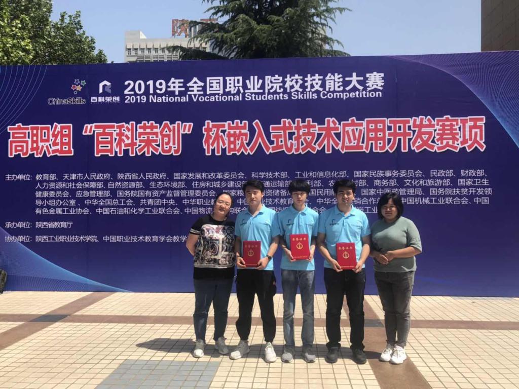 6月2日,2019年全国职业院校技能大赛(高职组)“嵌入式技术应用开发”赛项在陕西工业职业技术学院举行,共有来自全国28个省市的97支代表队参赛。公司王琰琰、杨晓燕老师以及徐金川、黄汇雨、于克鑫同学组成的代表队经过激烈竞争,最终取得国赛二等奖。