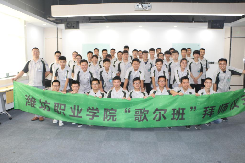 7月13日下午,学院与歌尔股份有限公司现代学徒制“歌尔班”拜师仪式隆重举行。本次拜师仪式是现代学徒制试点的重要环节,通过拜师仪式明确师徒关系、双方职责,为今后开展人才精准培养打好基础。学院副经理李瑞昌、歌尔股份有限公司人力资源本部校企合作总监冯云鹏、机电工程学现代学徒制试点项目相关负责人、歌尔股份有限公司PMF事业群人力资源部总监李强以及“歌尔班”全体师徒参加了仪式。