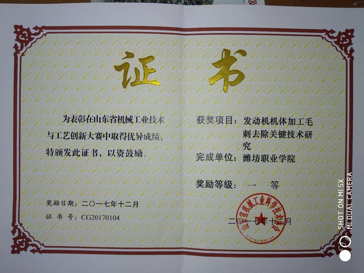 与会领导专家介绍了全省对外贸易情况及政策、“工业设备全球市场(欧美俄)准入准则”、“在线展览助推山东装备制造业走出去及成功案例”,期间颁发了“2017第二届山东省机械工业技术与工艺创新大赛”奖章、证书,公司李海庆老师申报的“发动机机体加工毛刺去除关键技术研究”获得一等奖,并荣获“五一劳动奖章”。